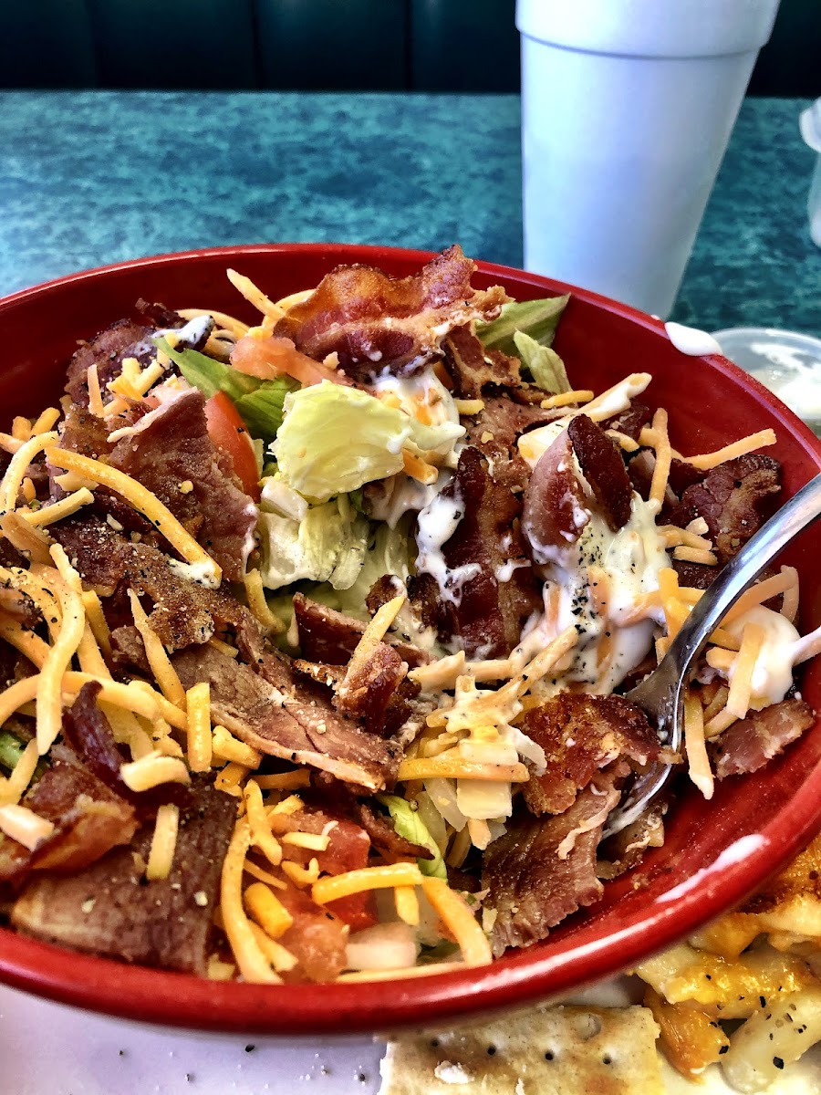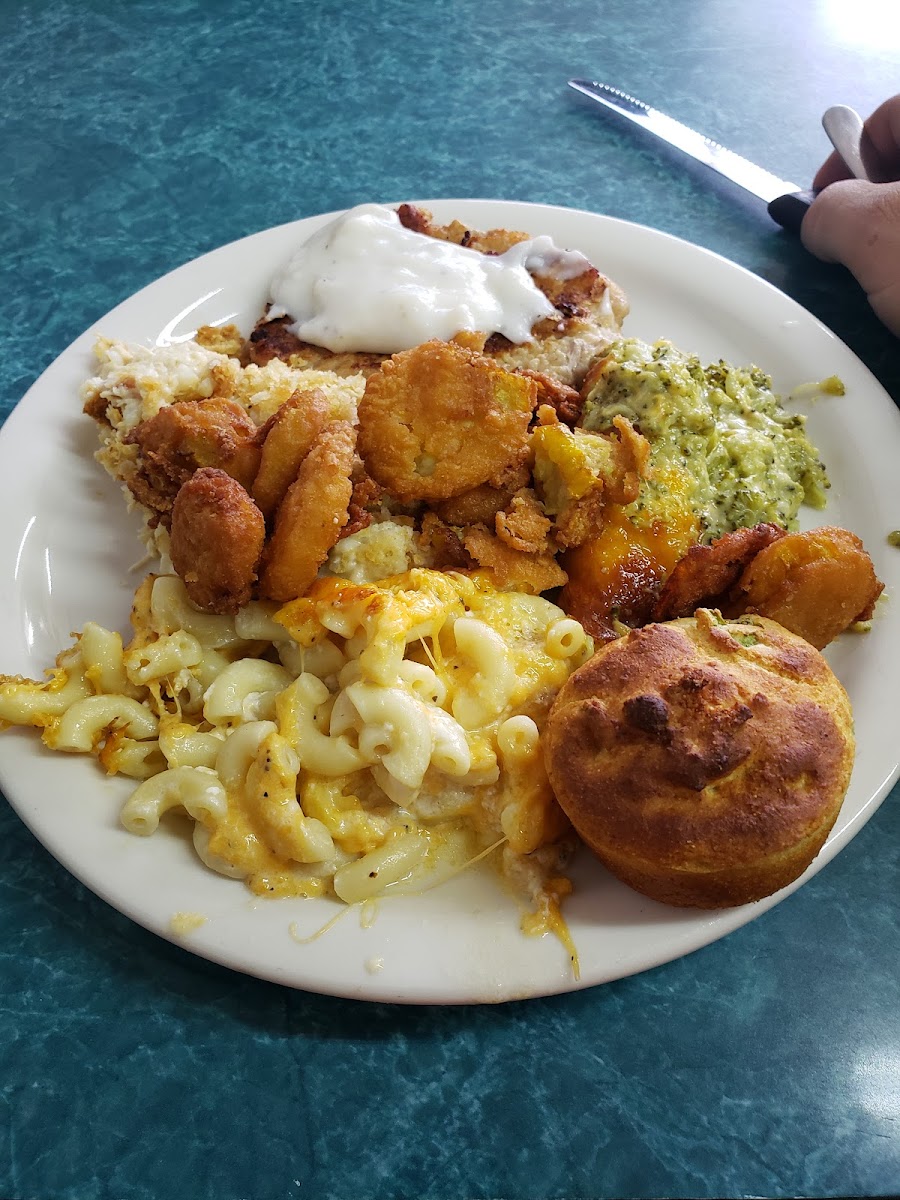 Nice and cozy but adequate room for hungry people. Buffet is offered with a meat and two sides type choice. Menu orders as well. I had the Chefs Salad yesterday with a side of Mac and cheese. WOW! Delicious. Fresh lettuce, tomatoes, tons of ham, cheese, bacon, and nice ranch dressing. The Mac & cheese was to the moon. Friendly service and great food.